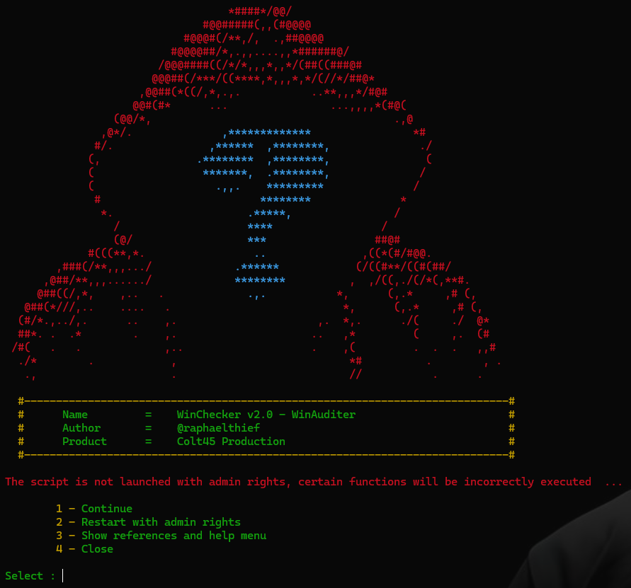 This is an old project designed to audit Windows configurations using several enumeration bash scripts. The program targets various potential attack vectors, such as displaying saved Wi-Fi keys, detecting infostealer target files in browsers, unquoted paths, and more.
