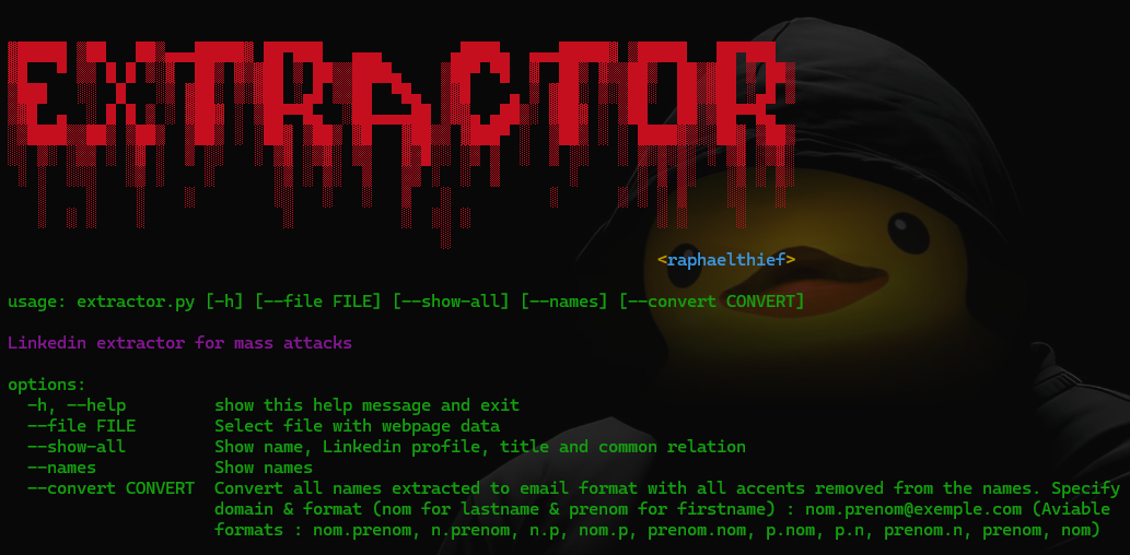 This project aims to automate email generation from the source code of a loaded LinkedIn page for phishing campaign operations. After analyzing the email format during an initial OSINT phase, the program automatically generates a mailing list based on the first and last names of targets, following the chosen format. I originally created this tool to also perform brute-force operations on APIs that lacked rate limiting on employee login endpoints.