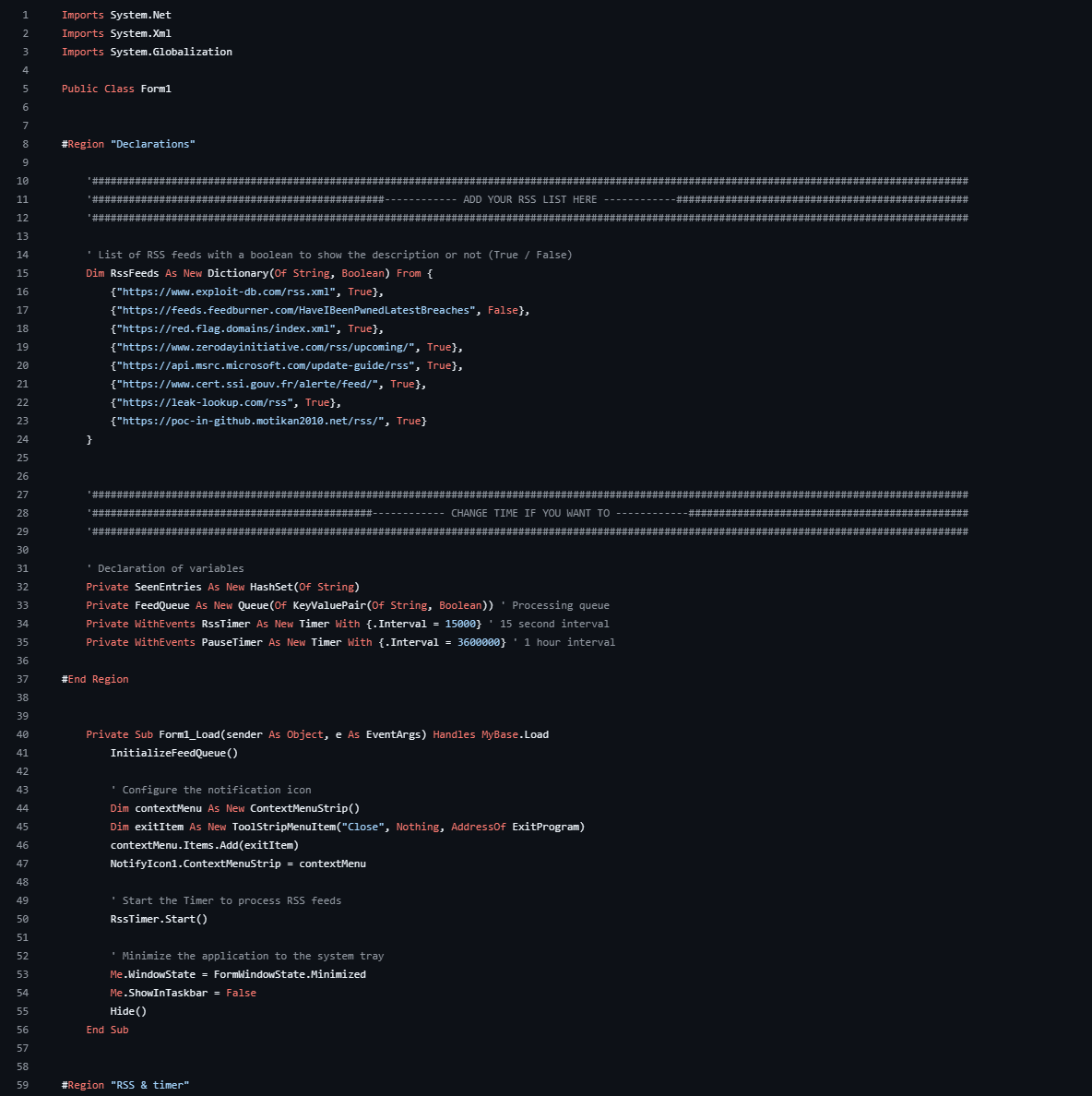 This program allows for quick monitoring of various RSS feeds and sends instant popup notifications on Windows. Nothing more, nothing less !